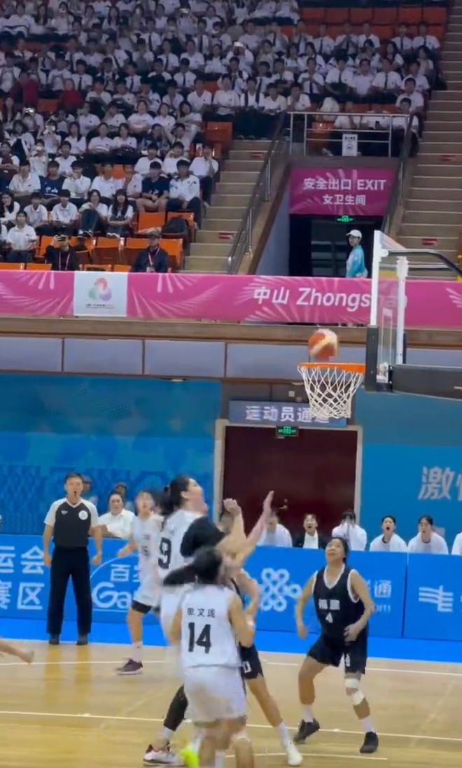 11月8日,广东广州,全运会篮球小组赛女篮U18级别山东队和重庆队的比赛中,2米26“女姚明”张子宇在全运会女篮正赛里完成了扣篮。