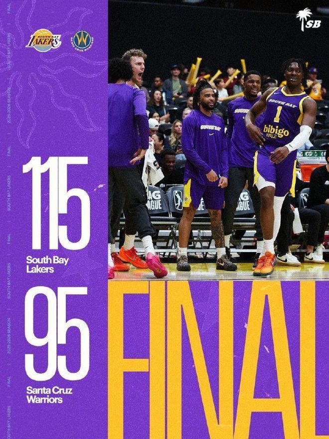 易边再战,南湾湖人第三节狂欢33-16攻势,前三节已经89-66领先23分优势。末节南湾湖人26-29被追回3分,最终南湾湖人115-95大胜圣克鲁兹勇士。