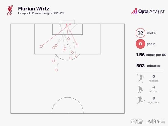 维尔茨没有为自己辩解的空间,数据统计上,他在11轮英超联赛里贡献了12次射门,却换来了颗粒无收的惨淡,虽然在社区盾杯和欧冠联赛中合计送出了3次助攻,只是用1.36亿欧元的转会费衡量个人价值时,这个成绩单略显寒酸。