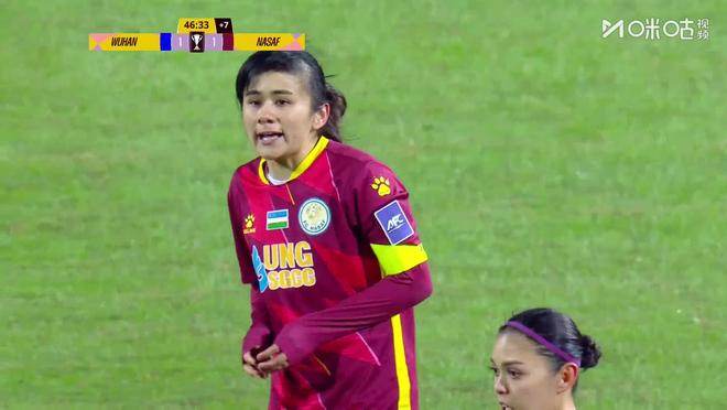 浪费机会的武汉女足很快遭到惩罚,补时阶段,纳萨夫女足边路突破,杀入禁区后送出倒三角传中,队友中路包抄打进扳平球,上半场双方战成1-1。