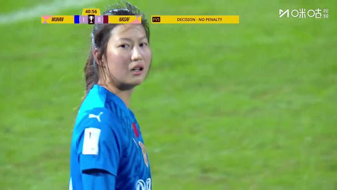 半场常规时间尾声阶段,剧情跌宕起伏。先是纳萨夫女足的射门造成黄宝莹禁区内的手球,主裁判第一时间判罚点球,随后VAR再次介入,主裁判看完回放后取消点球,武汉女足逃过一劫。转过头来,武汉女足一度有扩大比分的机会,第43分钟奥乌苏禁区内过掉门将,但面对空门却将皮球踢在了边网。