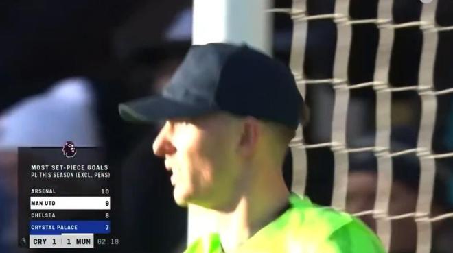 下半场第63分钟,芒特的进球帮助曼联将比分反超为2-1,水晶宫门将迪恩-亨德森下半场戴帽子守门,被芒特进球后把帽子摘了。