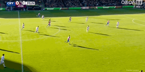 第54分钟,齐尔克泽小角度抽射打进个人赛季首球,曼联1-1水晶宫!
