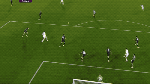 第38分钟,哈兰德回撤送出妙传,赖因德斯直面莱诺,四两拨千斤,破门得分。