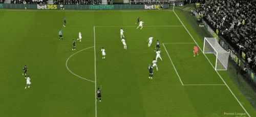 第44分钟,曼城的角球被莱诺单拳击出,福登禁区外的射门直挂死角,连场破门。